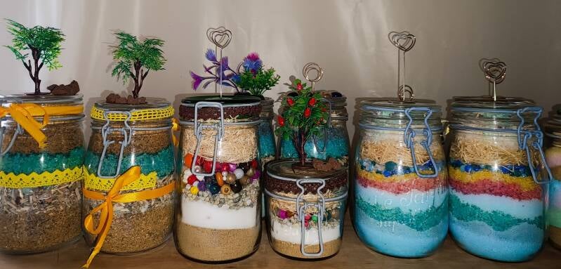 J'ai conçu pour vous des bocaux décoratifs, soigneusement recyclés, pour apporter une touche d'élégance et de caractère à votre intérieur. Chaque bocal est pensé pour être bien plus qu'un simple objet : c'est un rappel que vous êtes important. J'ai ajouté des accroches photo et des accroches message afin de personnaliser chaque création et la rendre véritablement unique. En plus d'embellir votre espace, ces bocaux sont une belle façon de joindre l'utile à l'agréable tout en respectant l'environnement. Laissez-vous séduire par ces petites merveilles faites avec amour et engagement pour vous offrir un intérieur chaleureux et inspirant.